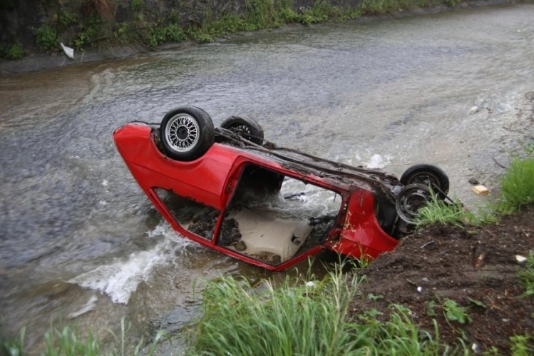 Yağmurun da etkisiyle hızla akan Gökdere'nin içerisinde sabah otomobili görenler, gözlerine inanamadı.