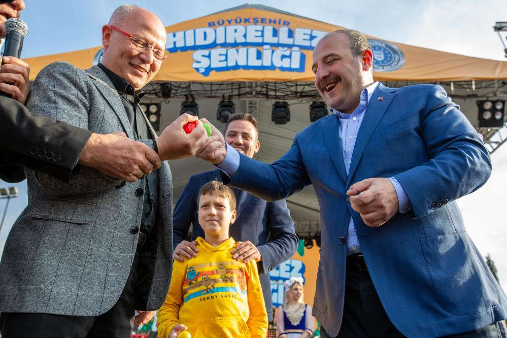 Konuşmaların ardından Bakan Mustafa Varank ve İl Başkanı Davut Gürkan, boyalı yumurtaları tokuşturdu. Mani torbasından kağıt çekerek okuyan Bakan Varank, daha sonra vatandaşlara da mani çektirdi. Kılıç kalkan ve halk dansları gösterileriyle keyifli anlar yaşayan Bursalılar, geleneksek ritüellerin yeniden hayat bulduğu şenlikte dilek tutup günün tadını çıkardı. Konserde sahne alan Bursalı sanatçı Menteşeli Cengiz, seslendirdiği türkülerle alanı dolduranları coşturdu. Gecenin son bölümünde sahneye çıkan usta sanatçı Sümer Ezgü de söylediği türkülerle Bursalılara keyifli bir akşam yaşattı. Sahne performansıyla izleyenlerden yoğun alkış alan ünlü sanatçı, tüm Bursalıların Hıdırellez Bayramı’nı tebrik etti.