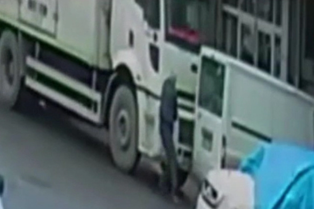 Güvenlik kameralarına yansıyan görüntülerde, kamyonun yavaşça kayarak dükkanın önüne kadar geldiği ve o esnada orada bulunan bir vatandaşın yaklaşık 50 tonluk kamyonu durdurmak için elleri ile kamyonu tuttuğu ve ardından kamyonun dükkanın önündeki panelvan araca çarparak durduğu görülüyor. Ekipler kazanının nedenini araştırmak için çalışma başlattı.