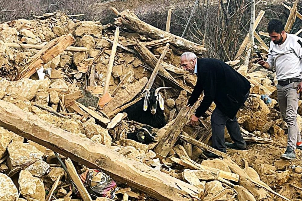 Kahramanmaraş'ın Nurhak ilçesine koordinatör olarak görevlendirilen Muş Valisi Doç. Dr. İlker Gündüzöz koordinesinde arama kurtarma ve enkaz kaldırma çalışmaları devam ediyor. İlçenin Barış Mahallesi'ne bağlı Alçiçek mezrasında enkaz kaldırma çalışması yürüten Muş ekibi, enkazdan gelen hayvan sesi üzerine iş makinelerini durdurdu. Sesin yoğunlaştığı bölgeyi titizlikle açan ekipler, besici Cennet Polat’a ait olduğu belirlenen 2 keçiye canlı ulaştı. Enkazdan çıkarılan keçilere veteriner hekimler tarafından yapılan ilk müdahalenin ardından su ve yem verildi. Sahibi şehir dışında olan keçiler, ekipler tarafından mahalle muhtarına teslim edildi.