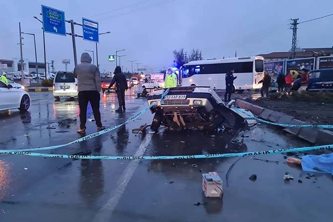 Kazada ikiye ayrılan otomobilin parçaları etrafa savruldu.