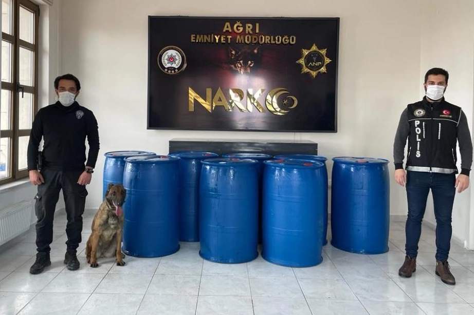 Ağrı Narkotik Suçlarla Mücadele Şube Müdürlüğü ekiplerince, İran uyruklu G.J ve M.R isimli iki şahsın şoför olarak bulunduğu ve Türkiye’ye getirilen İran plakalı tırda arama yapıldı. NARKO köpekleri Lucky ve Alfa’nın da destekleriyle yapılan aramada 1 ton 982 kilo sıvı metamfetamin ele geçirildi.