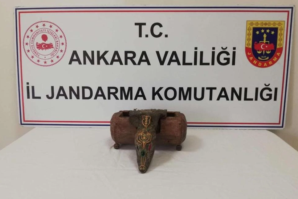 Ankara İl Jandarma Komutanlığı ekipleri, A.T., E.N.Y. ve K.G.’nin ele geçirdikleri tarihi eseri satarak haksız haksız kazanç elde etmeyi planladıkları bilgisine ulaştı. Şüphelilerin adreslerini tespit eden jandarma ekipleri yaptıkları üst aramasında, Antik Mısır dönemine ait ve kutsal kabul edilen timsahın derisi üzerinde mısır ikonları, çeşitli figürler ile üzerinde mühür bulunan el yazması altın sayılı eser ile deri üzerine çeşitli figürler ve objeler ile timsah objesinin muhafaza edildiği altın işlemeli deri kutuyu ele geçirdi. Ele geçirilen eserlerin 5 milyon lira değerinde olduğu aktarıldı.