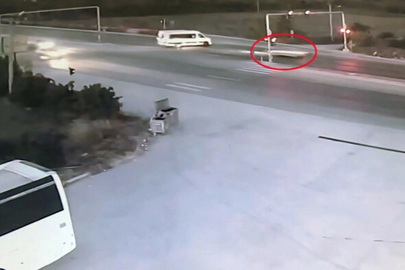Görüntülerde; ışık ihlali yapan sürücünün, minibüse çarpmamak için otomobili ile ters yöne girdiği, ardından refüje ve hareket halindeki başka bir araca çarptığı anlar yer aldı.
