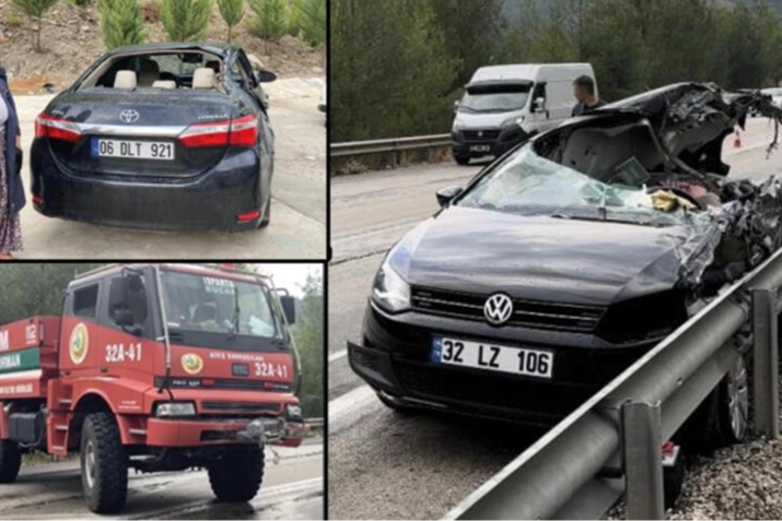 Kaza, Burdur’un Bucak ilçesi Antalya-Isparta karayolu üzerinde meydana geldi. Edinilen bilgilere göre, yangın ihbarına giden Orman İşletme Müdürlüğü’ne bağlı İsa D. (46) idaresindeki 15 PF 630 plakalı arazöz, seyir halindeki Gökhan Zengin idaresindeki 32 LZ 106 plakalı otomobil ve sürücüsünün ismi öğrenilemeyen 06 DLT 921 plakalı otomobil ile çarpıştı. 112 Acil Çağrı Merkezine yapılan ihbarın ardından bölgeye çok sayıda sağlık, polis ve jandarma ekipleri sevk edildi. Kaza yerine gelen sağlık ekiplerinin yaptığı ilk müdahale sonrası yaralılar Orman İşletme Müdürlüğü personeli İsa D., Özkan A. (28) ve Furkan Süleyman A. (23) ile 32 LZ 106 plakalı otomobilde bulunan E.M.Z. (15), E.Z. (11) ve durumu ağır olan Meltem Z. (42), ambulans ile Bucak Devlet Hastanesi’ne kaldırıldı.