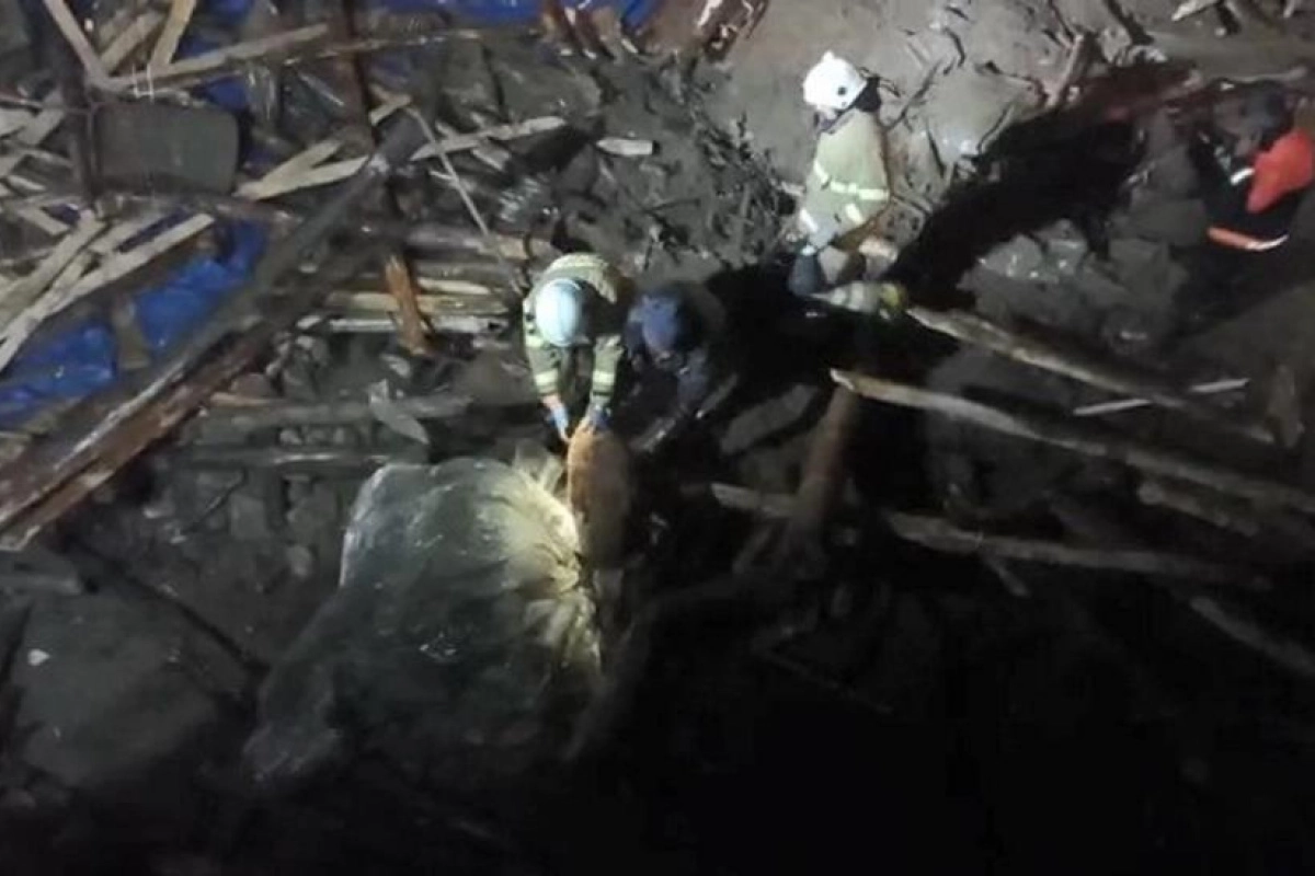 Ahırda bulunan çok sayıda hayvan ise ekipler tarafından enkaz altından çıkartılarak kurtarıldı.