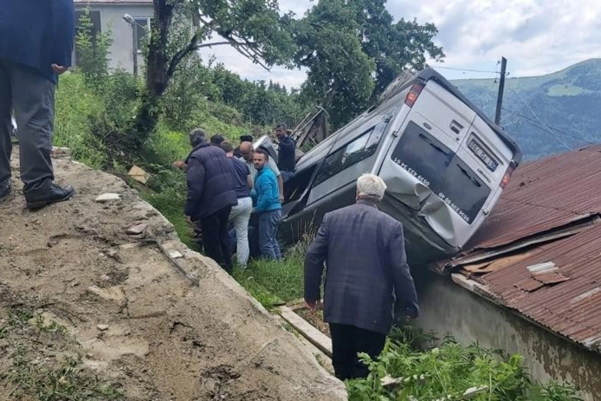 Edinilen bilgiye göre, Ahmet K. yönetimindeki 61 PD 790 plakalı minibüs, seyir halinde iken ilçenin Simenli mahallesinde freninin boşalması ile sürücüsünün direksiyon hâkimiyetini kaybetmesi sonucu kontrolden çıkarak evin çatısına düştü.