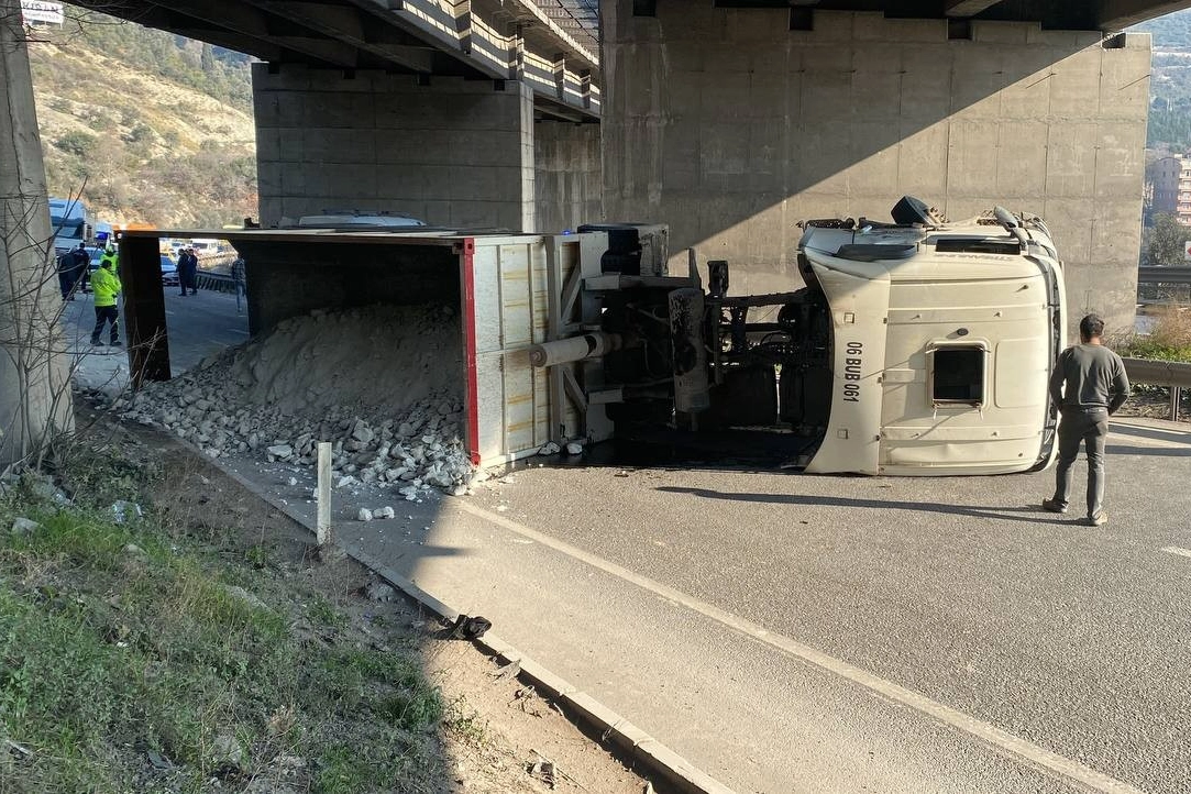 Kocaeli'nde D-100 Karayolu İstanbul istikametinde devrilen tırın sürücüsü yaralandı. Yaralı, ambulansla hastaneye kaldırıldı.