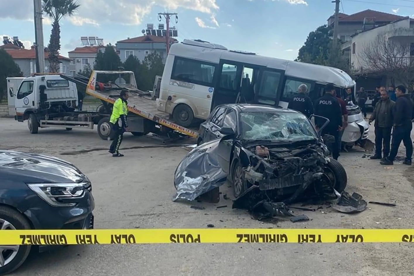 Muğla’nın Dalaman ilçesinde öğrencileri bırakıp boş vaziyette dönen öğrenci servisi ile 2 aracın karıştığı zincirleme trafik kazasında 1 kişi öldü, 2 kişi yaralandı. Kaza, bugün saat 14.30 sıralarında Dalaman’ın Merkez Mahallesi Sanayi Yolu kavşağında meydana geldi. Edinilen bilgiye göre, öğrencileri bırakıp boş vaziyette geri döndüğü belirtilen Galip Aydın idaresindeki 48 S 5598 plakalı servis minibüsü ile 07 AFM 55 ve 31 AHZ 729 plakalı otomobiller zincirleme trafik kazasına karıştı. İhbar üzerine olay yerine gelen sağlık polis ve itfaiye ekipleri sevk edildi. Sağlık ekipleri yaralılara müdahalede bulunurken, servis minibüsünün sürücüsü Galip Aydın ekiplerin tüm müdahalesine rağmen kurtarılamadı. Aydın’ın cenazesi ile diğer yaralılar ambulanslarla Dalaman Devlet Hastanesi’ne kaldırıldı.