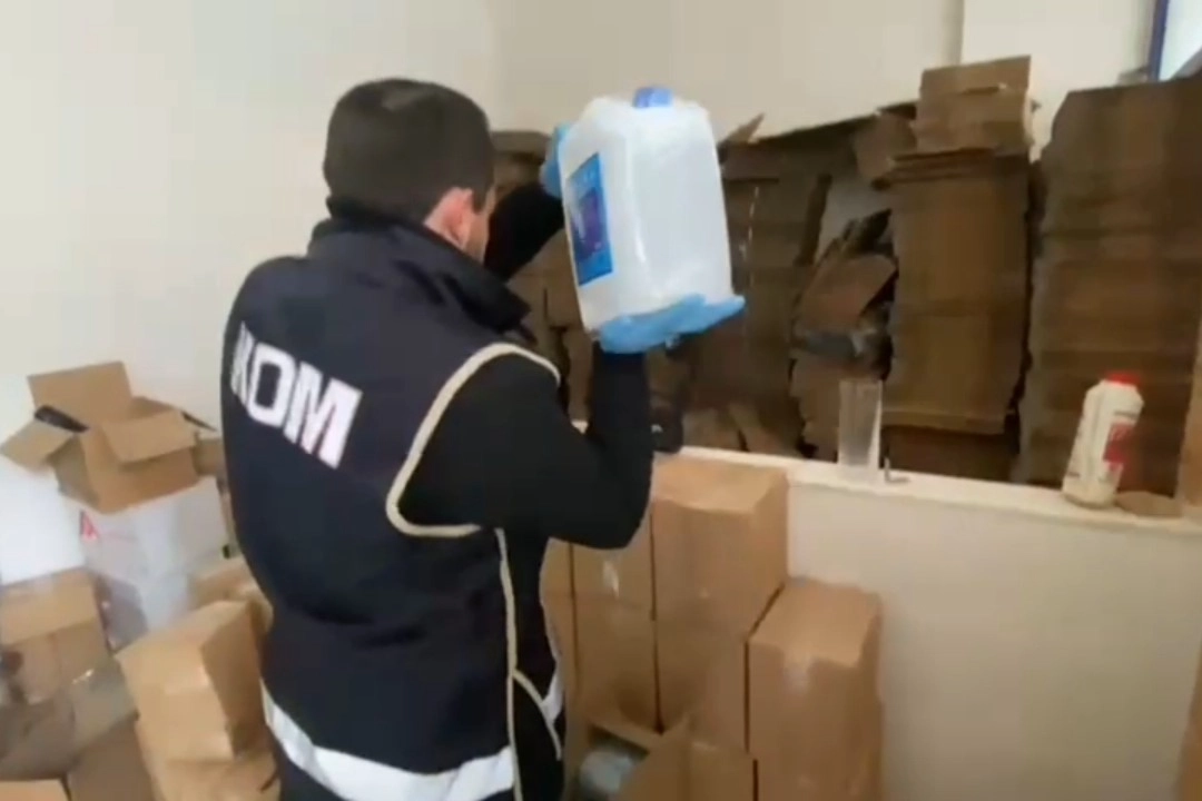 İzmir'in Bayraklı ilçesinde bir depoda, el dezenfektanı etiketleriyle satışa sunulmaya hazırlanan 1 ton sahte etil alkol ele geçirildi. Olayla ilgili 2 şüpheli hakkında adli işlem başlatıldı.