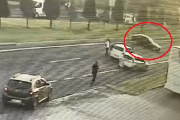 Nevşehir Belediyesi İtfaiye Müdürlüğü önünde bir sürücü, düğün konvoyunda otomobiliyle drift attı.