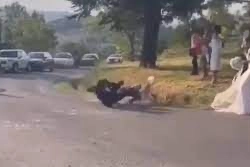 Damat, motosiklete binip yola düğün alanına yaklaştığı sırada bir anda dengesini kaybetti.