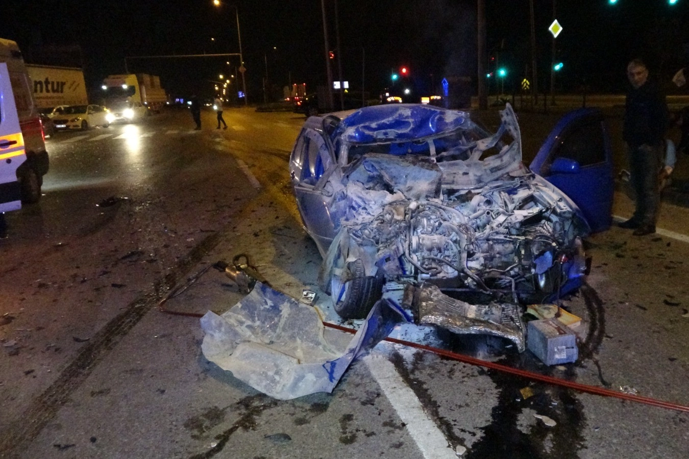 Kaza; Manavgat-Antalya D-400 Karayolunda bu sabaha karşı yaşandı. Edinilen bilgiye göre Manavgat istikametinden Antalya istikametine gitmekte olan Seyfullah Akdemir’in kullandığı 42 AJJ 244 plakalı sebze kasası yüklü kamyona, trafik lambalarını geçtiği sırada, aynı istikamette seyir halindeki Murat Volkan Sevim’in kullandığı 48 FD 990 plakalı otomobil arkadan çarptı. Aşırı hızlı olduğu bildirilen otomobilin çarptığı kamyon çarpmanın şiddetiyle toplama yol ile anayol arasındaki refüje devrilirken otomobil sürücüsü hurdaya dönen ve yanmaya başlayan otomobil içerisinde, kamyon sürücüsü de kamyon ile refüj bordürü arasında sıkıştı. Otomobil sürücüsünün yardımına yoldan geçen diğer araç sürücüleri koşarken, duman çıkmaya başlayan araç yangın tüpüyle söndürüldü.