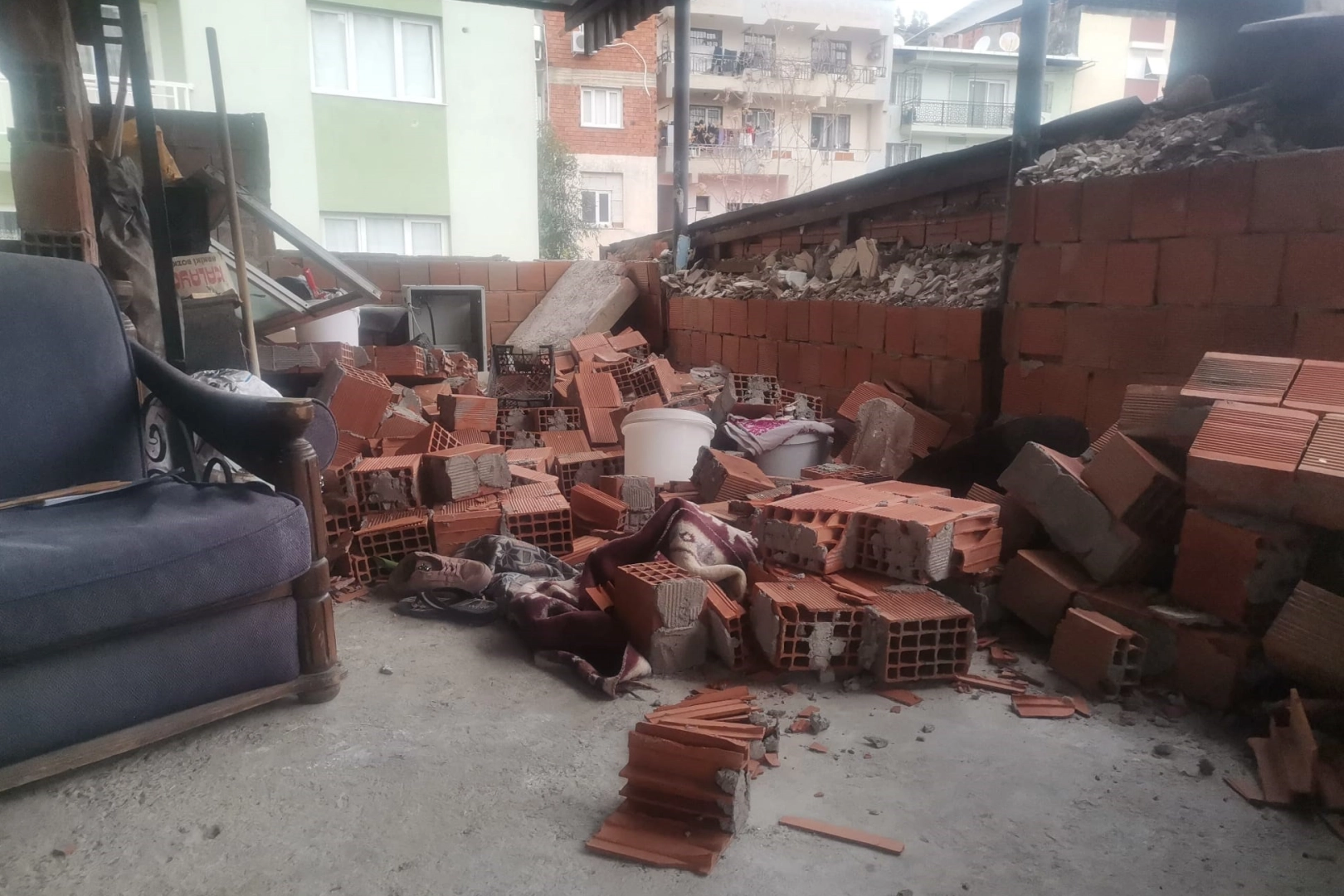 İzmir’in Bayraklı ilçesinde kuvvetli fırtınada teras katında ekmek yapan kadınların üzerine duvar yıkıldı. Düşen tuğlalar nedeniyle yaralanan 3 kadın hastanelere kaldırılarak tedavi altına alındı. Olay, akşam saatlerinde Onur Mahallesi 7357 Sokak’ta meydana geldi. 3 katlı binanın teras katında sac üzerinde ekmek yapan Halime Y. ( 45), Rümeysa Y. (18) ve Gülten İ. kuvvetli fırtına nedeniyle teras duvarının çökmesi sonucu yaralandı. Tuğlaların üzerlerine düşmesi sonucu yaralanan 3 kadın, aile fertlerinin ihbarı üzerine adrese gelen ambulanslar ile hastanelere kaldırıldı. Rümeysa Y. ile Gülten İ.’nin Ege Üniversitesi Tıp Fakültesi Hastanesinde, anne Halime Y.’nin de İzmir Çiğli Eğitim ve Araştırma Hastanesinde tedavilerinin sürdüğü ve sağlık durumlarının iyi olduğu öğrenildi. “Duvarın altında kaldılar” Halime Y.'nin kızı Ayşenur Y. (16), annesi, kardeşi ve komşularıyla birlikte ekmek yaparken duvardın yıkıldığını belirterek yaşadıkları korku dolu anları şu sözlerle anlattı: "Bağırdım ama çok geç oldu. O esnada annem başından yaralandı. Duvarın altında kaldılar. Yanımda kardeşim vardı, çocuklar korkudan çok bağırdı. Onları alıp aşağı indirdim. Sonra ambulans geldi."
