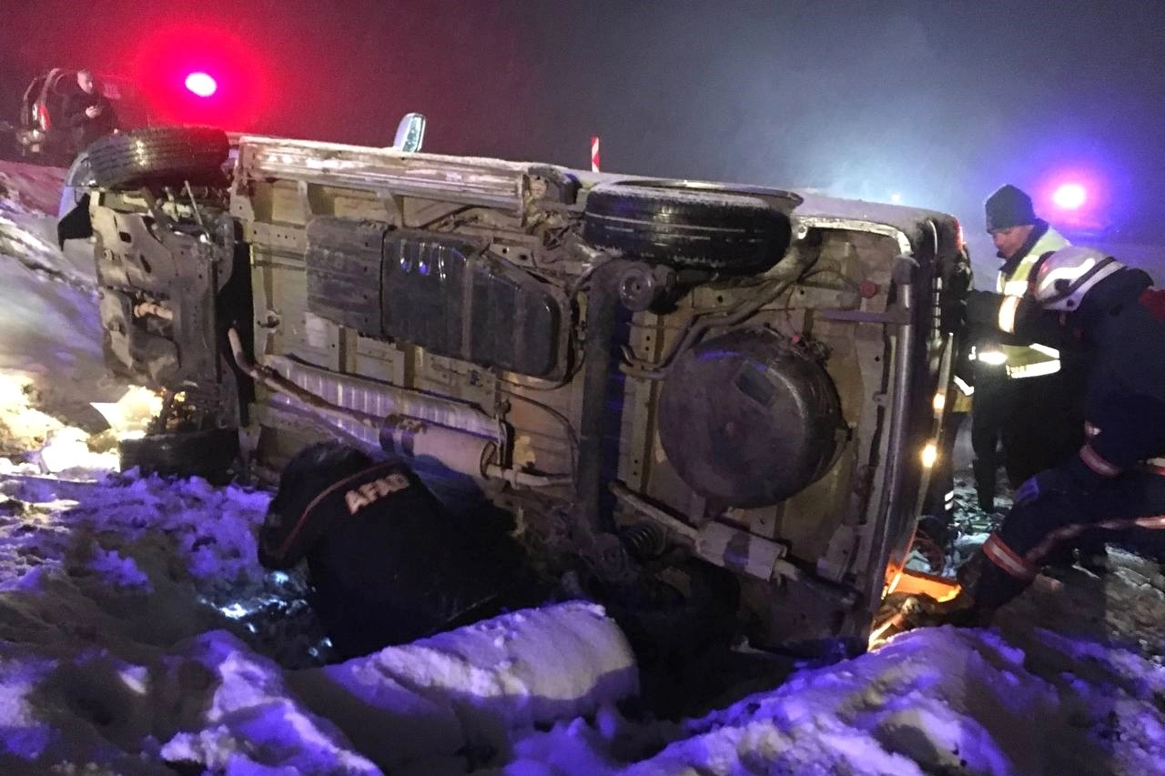 Elazığ'da gece saatlerinde yoğun kar yağışının da etkisiyle sürücüsünün direksiyon hakimiyetini kaybetmesi sonucu panelvan şarampole yuvarlandı. Kaza sonrası takla atarak ters dönen aracın altında sıkışan bir kişi, ekiplerin yoğun çalışmasıyla yaklaşık 1 buçuk saat sonra kurtarıldı.
