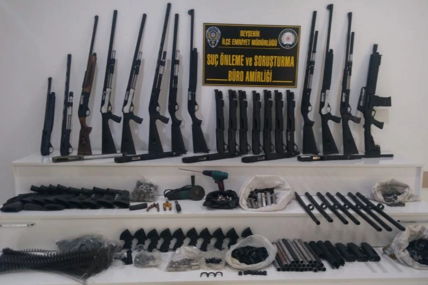 Konya’nın Beyşehir ilçesinde polisin silah üretimi yapılan bir ikamete düzenlediği operasyonda birçok ruhsatsız silah ve silah parçasına el konuldu. Olayla ilgili 1 kişi gözaltına alındı. Edinilen bilgiye göre, polis ekipleri Beyşehir ilçesinde bir ikamette silah üretimi ve üretilen silahların buradan piyasaya sürüldüğü bilgisine ulaştı. Bunun üzerine Beyşehir İlçe Emniyet Müdürlüğü Suç Önleme ve Soruşturma Büro Amirliği ekipleri harekete geçti. Adrese düzenlenen operasyonda adeta fabrikaya çevrilmiş evde 13 adet ruhsatsız yivsiz av tüfeği, 10 adet kısa pompalı tüfek, bin 289 adet av tüfeği parçası, 4 adet tüfek imalatı için kullanılan el aleti ele geçirildi. Ruhsatsız silah ve silah parçalarına el koyan polis ekipleri olayla ilgili ikametteki 1 şüpheliyi gözaltına aldı. Şüpheli hakkında adli işlem başlatıldı.
