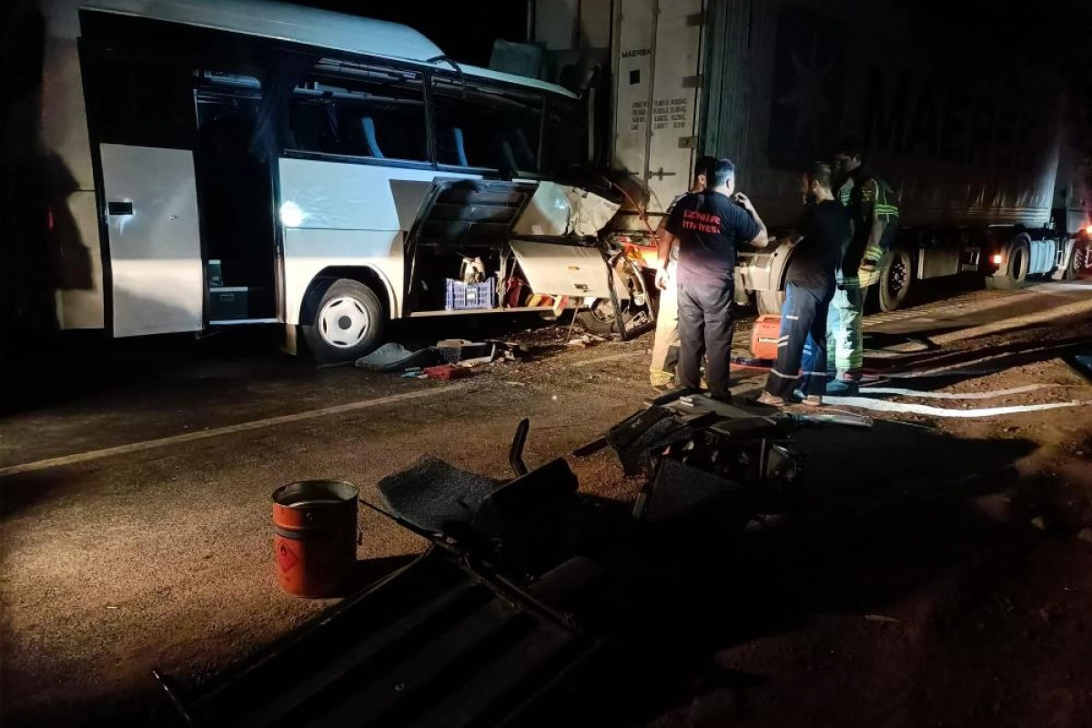 Edinilen bilgiye göre kaza, saat 02.00 sıralarında İzmir - Çanakkale otoyolu Zeytindağ Kantar mevkiinde meydana geldi. İddiaya göre, İzmir'den Çanakkale istikametine hızlı bir şekilde seyir halinde olan Yıldırım Çınar idaresindeki 35 S 50058 plakalı servis minibüsü aynı yolda seyir halında olan Erdem. Ö idaresindeki 41 TV 484 plakalı tırın 41 AAR 848 plakalı doresine arkadan çarptı.
