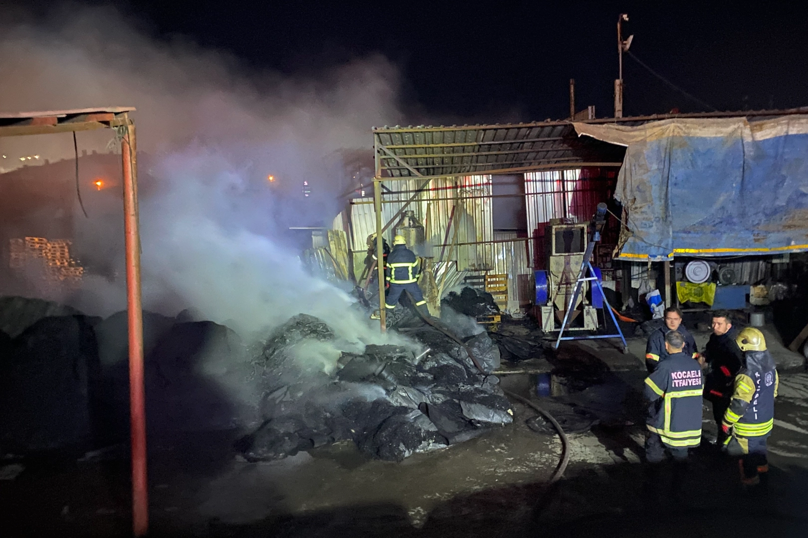 Kocaeli’nin Gebze ilçesinde bulunan bir geri dönüşüm deposunda çıkan yangın, hemen yanındaki palet imalathanesine sıçradı. Kısa sürede büyüyen yangında iki iş yeri de alevlere teslim oldu.