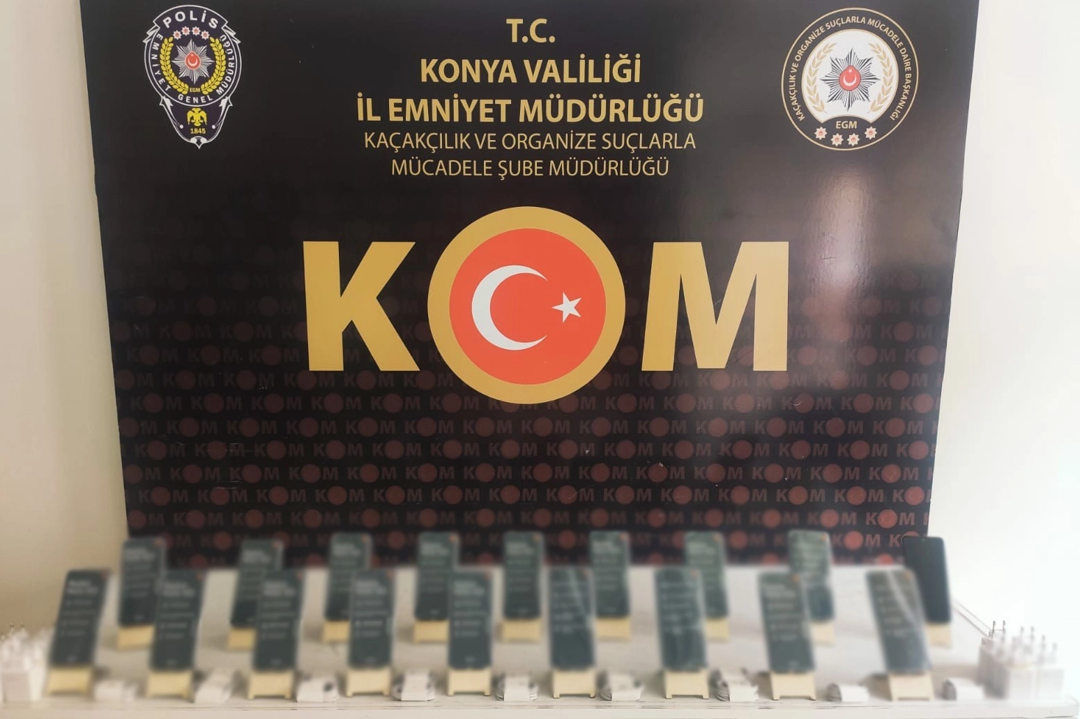 Konya’da KOM ekipleri internette kaçak ürün satışlarının izini sürmek için yaptığı sanal devriye esnasında bir sosyal medya hesabı üzerinden gümrük kaçağı cep telefonu satışı yapıldığını tespit etti. Polisin çalışmasıyla 18 adet gümrük kaçağı cep telefonu ve 30 adet gümrük kaçağı cep telefonu aksesuarı ele geçirilirken, 2 kişi hakkında adli işlem başlatıldı.