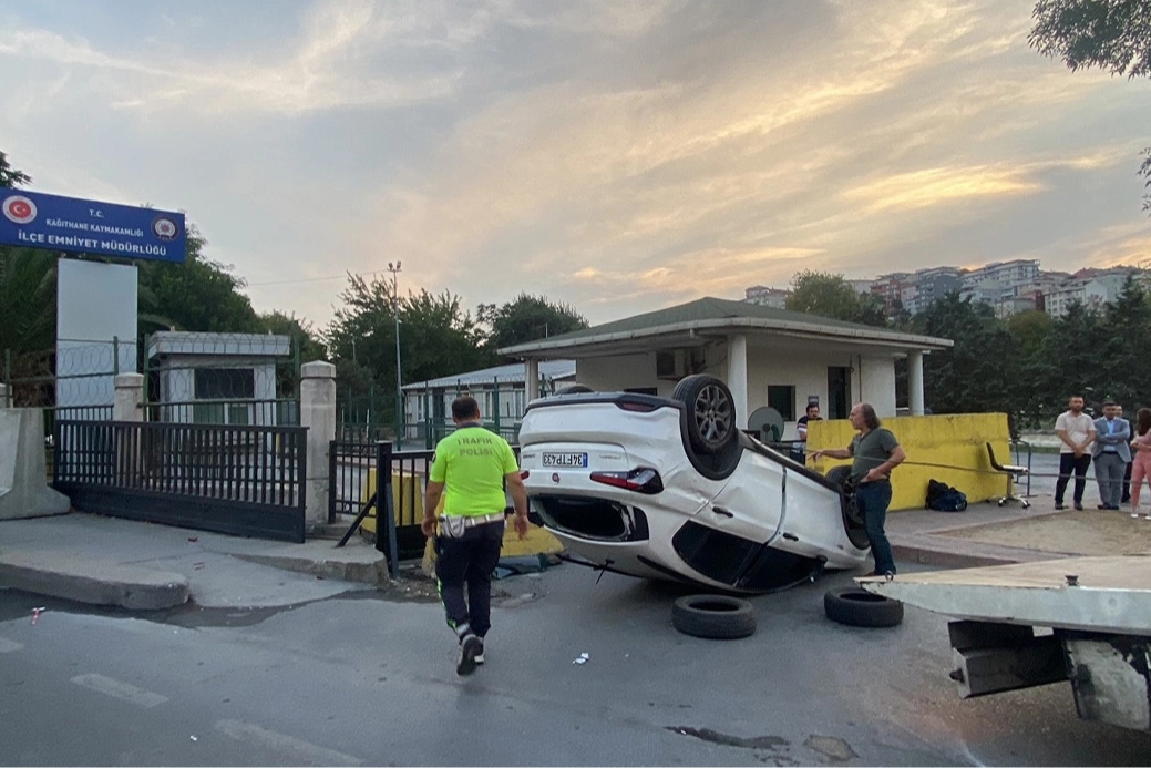 Kaza, saat 18.00 sıralarında Kağıthane İmrahor Caddesi üzerinde meydana geldi. Edinilen bilgiye göre, 34 FTP 433 plakalı otomobil sürücüsü, kırmızı ışıkta geçti. O sırada kavşaktan dönmek üzere olan 34 SG 4989 plakalı araçla çarpışan otomobil, önce refüje çıktı ardından da Kağıthane İlçe Emniyet Müdürlüğü’nün önüne uçarak ters döndü. 4 kişinin olduğu ters dönen otomobilde vatandaşlar yara almadan kurtuldu.
