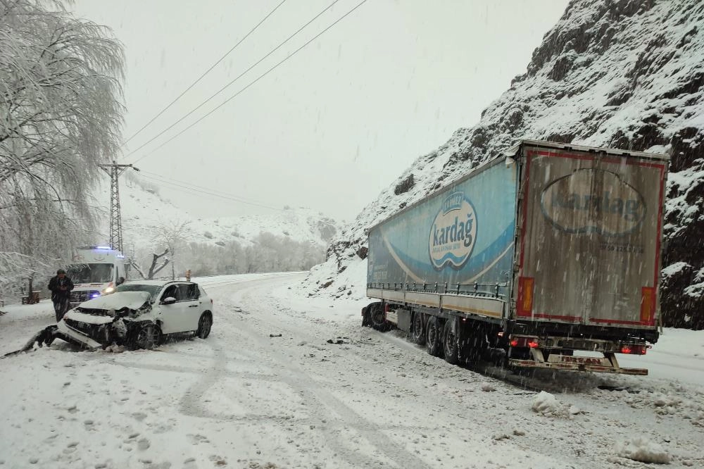 Edinilen bilgiye göre, Pülümür ilçe çıkışında bir araç ile tır, kayganlaşan yolda kafa kafaya çarpıştı. Kazad her iki aracın sürücüsü de yaralandı. Vatandaşların haber vermesi üzerine olay yerine ambulanslar sevk edildi. İlk müdahaleleri olay yerinde yapılan yaralılar daha sonra Pülümür Toplum Sağlığı Merkezine kaldırılarak tedavi altına alındı. Genel durumları iyi olan yaralıların tedbir amaçlı Tunceli Devlet Hastanesine sevk edildikleri belirtildi. Kazayla ilgili inceleme başlatıldı.