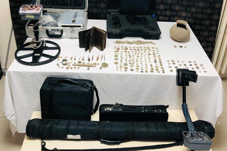 Edinilen bilgiye göre, 4 Ocak tarihinde İl Emniyet Müdürlüğü Kaçakçılık ve Organize Suçlarla Şubesi ekipleri, Cumhuriyet savcılığının talimatı ile düzenlenen operasyonda 7 şüpheli gözaltına alındı. Şüphelilerin ikamet, iş yeri ve araçlarda yapılan aramalarda ise 277 adet sikke, 27 adet yüzük, 1 adet tarihi eser deri üzerine yazılmış kitap, 1 adet testi, 9 adet ok ucu, 28 adet muhtelif tarihi eser obje, 2 adet dedektör, 1 adet zemin ölçmede kullanılan cihaz ve dedektörlere ait muhtelif cihazlar ele geçirildi. Emniyetteki işlemleri tamamlanan 7 şüpheli adliyeye sevk edildi. Şüphelilerden 2'si savcılıktaki ifadelerinin ardından Salı verildi. Mahkemeye sevk edilen 5 şüpheli ise adli kontrol şartıyla serbest bırakıldı.