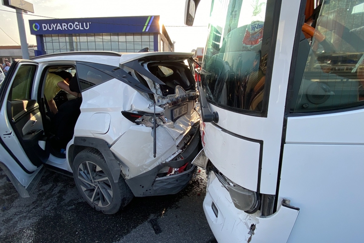Kaza, D-130 karayolu Sanayi Mahallesi mevkiinde Gölcük istikametinde meydana geldi. Edinilen bilgiye göre, aralarında şehirlerarası yolcu otobüsü, kamyonet ve minibüsün de bulunduğu 8 araç zincirleme kazaya karıştı. Kazada R.A. ile çocuğu A.A. yaralandı. 112 Acil Çağrı Merkezi'ne yapılan ihbar üzerine olay yerine itfaiye, sağlık ve polis ekipleri sevk edildi. 2 yaralı, sağlık ekiplerinin olay yerindeki ilk müdahalesinin ardından hastaneye kaldırıldı. Kaza sebebiyle otobüsteki yolcular uzun süre beklemek zorunda kaldı, trafik ise durma noktasına geldi. Trafik ekipleri, otoyolda muhtemel kazaların önüne geçebilmek için önlem aldı. Trafik, kazaya karışan araçların kaldırılmasının ardından normal seyrine döndü.