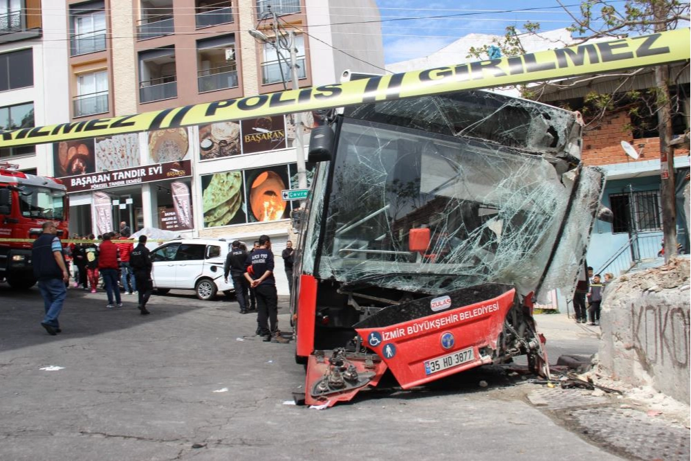 Kaza saat 13.15 sıralarında ilçeye bağlı Refik Şevket İnce Mahallesi 2173 Sokak'ta meydana geldi. Edinilen bilgiye göre, Mevlüt A. (42) yönetimindeki 599 No'lu M.Erener- Halkapınar seferi yapan 35 DHD 3877 plakalı ESHOT belediye otobüsü, yağmurun etkisiyle kayganlaşan yolda bir anda kontrolden çıktı. Yokuş aşağı savrulan otobüs, sokak köşesindeki duvara çarparak durabildi. Kazanın bildirilmesi üzerine bölgeye çok sayıda polis, sağlık ekibi ve itfaiye sevk edildi. Araç içerisinde sıkışan sürücü Mevlüt A., itfaiye ekipleri tarafından kurtarılırken otobüste ilk belirlemelere göre 10 kişinin daha yaralandığı öğrenildi. Yaralılar sağlık ekipleri tarafından ambulansla çevredeki hastanelere sevk edilirken kazayı hafif sıyrıklarla atlatan bazı yolcular ayakta tedavi edildi. Öte yandan meydana gelen kaza sokakta bulunan bir apartmanın güvenlik kamerası tarafından kaydedildi. Görüntüde kayganlaşan yolda yokuş aşağı savrulan otobüs yer aldı. Vatandaşlar önlem alınmamasına tepki gösterdi Kaza anını anlatan çevre sakinleri, bu yolda yağmur yağdığı zaman sürekli kaza olduğunu dile getirerek önlem alınmamasına tepki gösterdi. Sadettin Çiçek adlı vatandaş, "Fren sesi ve ardından gürültüyü duydum koşarak yardıma geldim. Otobüste çok sayıda yaralı vardı ve ambulans çağırdık. Burada ne zaman yağmur yağsa yol kayganlaşsa sürekli trafik kazası oluyor. Buraya önlem alınmasını istiyoruz" dedi. Vatandaşlardan Zemirhan Çiçek ve Murat Ekin de, bu mahallede yolların çok tehlikeli olduğunu dile getirerek özellikle toplu taşıma araçlarının çok sayıda kazaya karıştığını belirtti ve yetkililerin buraya önlem alması gerektiğini söyledi. Kaza ile ilgili başlatılan soruşturma sürüyor.
