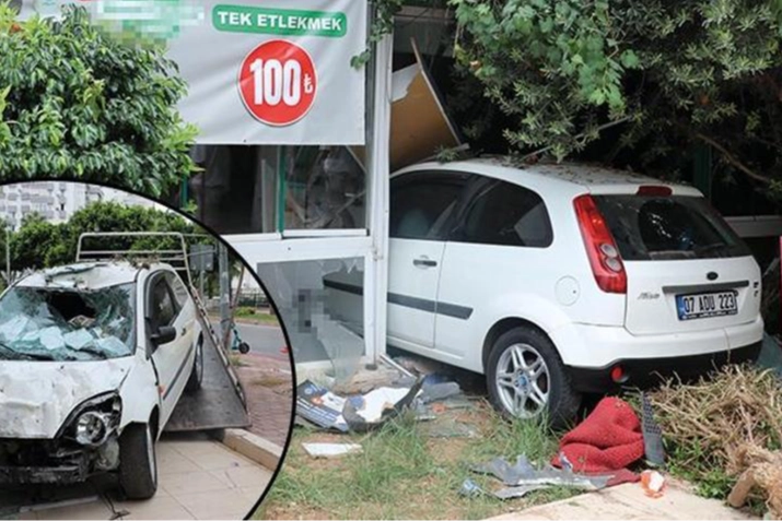 Kaza, saat 15.30 sıralarında Şirinyalı Mahallesi, İsmet Gökşen Caddesi üzerinde meydana geldi. Fatih K. (35) yönetimindeki 07 ADU 223 plakalı otomobil, sürücünün direksiyon hakimiyetini kaybetmesi sonucu önce kaldırım üzerindeki elektrik panosuna, ardından bir eczanenin camekanına çarptıktan sonra restorana girdi. Çevredeki vatandaşlar durumu 112 Acil Çağrı Merkezi'ne bildirdi. İhbarla bölgeye polis ve sağlık ekibi sevk edildi. Kazada hafif yaralanan Fatih K., ambulansla hastaneye götürülerek tedaviye alındı. Otomobil ise çekiciyle restorandan çıkarıldı. Kaza, eczanenin güvenlik kamerasına da yansıdı. Kaza sırasında restoranın ve eczanenin kapalı olduğu belirtildi.