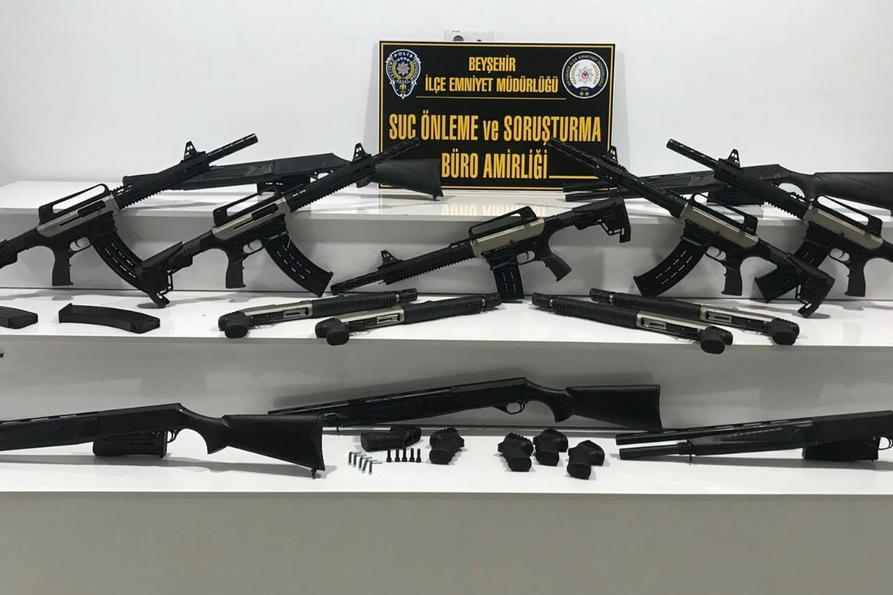 Edinilen bilgiye göre, Beyşehir ilçesinde Beyşehir Cumhuriyet Başsavcılığı koordinesinde Beyşehir İlçe Emniyet Müdürlüğü Suç Önleme ve Soruşturma Büro Amirliği ekiplerince, kaçak silah üretimi ve satışı yapan şahıslara yönelik çalışma başlatıldı. Polis ekipleri, bir kargo firması aracılığıyla farklı illere faturasız ve ruhsatsız silah gönderileceği bilgisi üzerine harekete geçti. Kargo firmasına ait şubede arama yapan polis ekipleri, Şanlıurfa ve Afyonkarahisar illerine gönderilmek üzere kolilenmiş 10 adet otomatik av tüfeği, 4 adet pompalı tüfek, onlarca birleştirilmeye hazır tüfek parçası ve şarjör ele geçirdi.