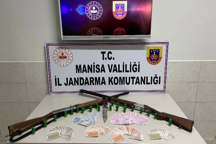 Akhisar ve Şehzadeler İlçe Jandarma Komutanlığı ekiplerince yapılan istihbarat çalışması sonucu; Akhisar ilçesinde L.B. isimli şahsın bağ evinde kumar oynattığı, Şehzadeler ilçesinde B.Ç. isimli şahsın kıraathanede kumar oynattığı duyumunun alınması üzerine, bağ evinde yapılan arama ve kıraathanede yapılan kontrolde; 5 deste iskambil kağıdı, 10 bin 300 TL’lik nakit para, oyun zarı, 1 adet kasatura, 2 adet ruhsatsız av tüfeği ele geçirildi. Kumar oynayan 11 kişiye toplamda 40 bin 550 TL idari yaptırım kararı uygulanırken, şüpheliler hakkında adli işlem başlatıldı.