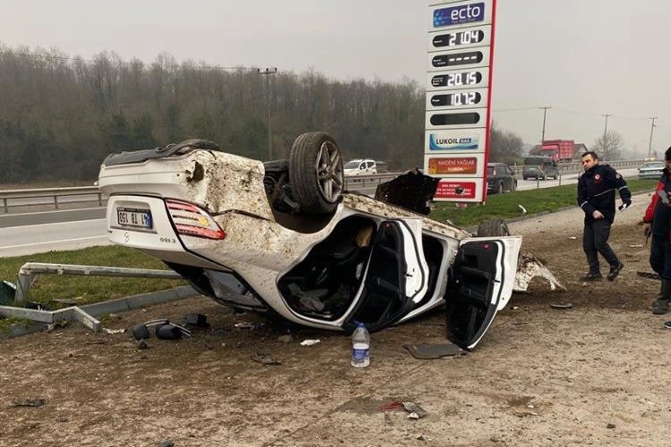 Sakarya’nın Adapazarı ilçesi D-650 karayolunda sürücüsünün kontrolünden çıkan lüks otomobil takla attı. Hurdaya dönen otomobil içerisinden çıkarılan 2 yaralıdan biri kaldırıldığı hastanede hayatını kaybetti. Kaza, sabah saatlerinde Adapazarı - Karasu D-650 karayolunda Poyrazlar mevkiinde meydana geldi. Edinilen bilgiye göre, Karasu istikametine doğru seyir halinde olan Y.D. idaresindeki 41 TB 150 plakalı Mercedes marka lüks otomobil sürücüsünün kontrolünden çıktı. Kontrolden çıkan otomobil takla attı. Kazanın haber verilmesi üzerine bölgeye itfaiye, sağlık ve jandarma ekipleri sevk edildi. Otomobil içerisinde sıkışan sürücü Y.D. ile yanında yolcu olarak bulunan Gülbahar T., bölgeye ulaşan itfaiye ekiplerince kurtarılarak sağlık ekiplerine teslim edildi. Sağlık ekiplerince Sakarya Eğitim ve Araştırma Hastanesine kaldırılan Gülbahar T., burada yapılan müdahalelere rağmen kurtarılamayarak hayatını kaybetti. Sürücünün de durumunun ağır olduğu öğrenilirken, kaza ile ilgili inceleme başlatıldı.