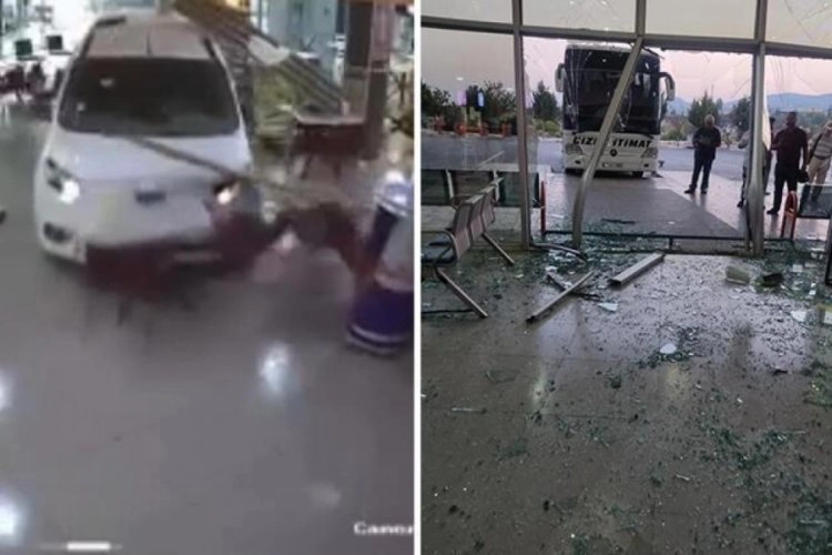 Kaza, dün Mersin şehirler arası otobüs terminalinde meydana geldi. Peronda sürücüsünün fren yerine gaza bastığı 46 ADZ 841 plakalı hafif ticari araç, yolcu bekleme salonuna daldı. Camı kıran araç, içerideki masa ve sandalyelere çarptı. Sürücü kazada yara almazken, araçta ve bekleme salonunda hasar oluştu. Kaza güvenlik kamerasına yansıdı.