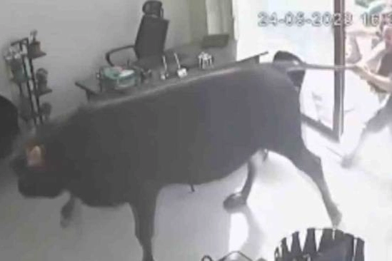 Burada araçlara zarar veren dana, daha sonra Cumhuriyet Meydanı'nda bulunan bir emlakçı dükkanının içine girdi.