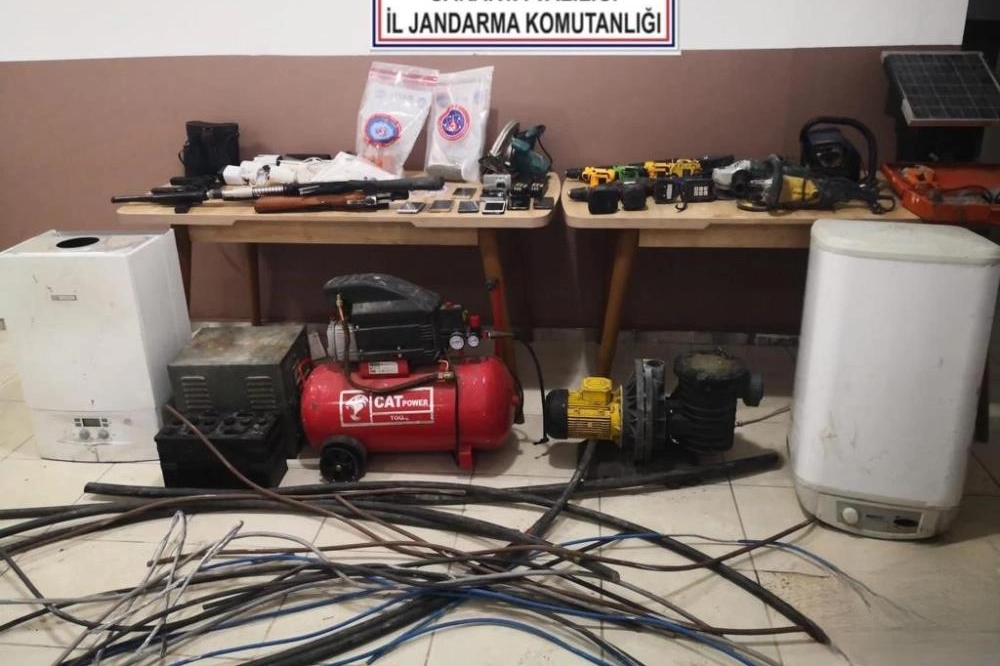 Edinilen bilgiye göre, Geyve ilçesi Hırka Mahallesi’nde Ş.S. isimli vatandaşın evinden birçok eşya çalındı. Durumun haber verilmesi üzerine jandarma ekipleri konuya ilişkin inceleme başlattı. Çalışmalar neticesinde Çeltikler Mahallesi’nde B.Y. isimli şüphelinin ev ve eklentilerine JASAT ekipleri ile birlikte baskın düzenlendi. Yapılan aramalarda; çeşitli marka ve modellerde 7 adet cep telefonu, 2 adet içerisinde 243,38 gram uyuşturucu olduğu değerlendirilen madde bulunan kavanoz, 2 adet kurusıkı tabanca, 1 adet markası ve seri numarası belli olmayan demir aksamlı tabanca, 6 adet tabanca şarjörü, 1 adet av tüfeği, hava kompresörü, dürbün, telsiz telefon, 9 adet matkap, 2 adet spiral taşlama, dekupaj testere, ağaç kesim motoru, 3 adet fotoğraf makinesi, 9 adet güvenlik kamerası, akü şarj cihazı ve 22 adet elektrik kablosu ele geçirildi. Jandarma ekiplerince gözaltına alınan B.Y., tamamlanan işlemleri sonrasında çıkarıldığı adli makamlarca tutuklanarak cezaevine gönderildi.