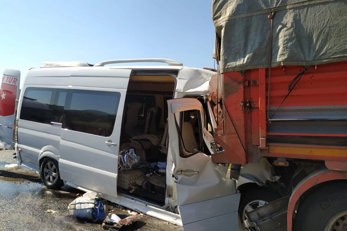 Alınan bilgilere göre, Kütahya'dan Bursa'ya giden Gediz Kız-Erkek Kur'an Kursu öğrencilerini taşıyan Enver Dinçer idaresindeki 43 LN 165 plakalı yolcu midibüsü, Bilecik'in Bozüyük ilçesine bağlı Muratdere Köyü mevkiinde önünde seyreden Mustafa Sırlı idaresindeki 06 PGZ 83 plakalı tıra arkadan çaptı.
