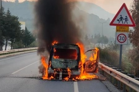 Olay, Söke-Kuşadası yolu üzeri Granta mevkiinde meydana geldi. Edinilen bilgiye göre, Söke'den Kuşadası istikametine seyir halinde olan ticari araç, henüz bilinmeyen bir nedenden dolayı yolda alev topuna döndü. Bir anda alevlerin yükseldiği aracın sürücüsü kendini zorlukla dışarı attı. İhbar üzerine bölgeye itfaiye ekipleri sevk edildi. Kısa sürede olay yerine gelen ekipler, yangını söndürdü. Yangında araç tamamenküledönerken, olay ile ilgili inceleme başlatıldı.