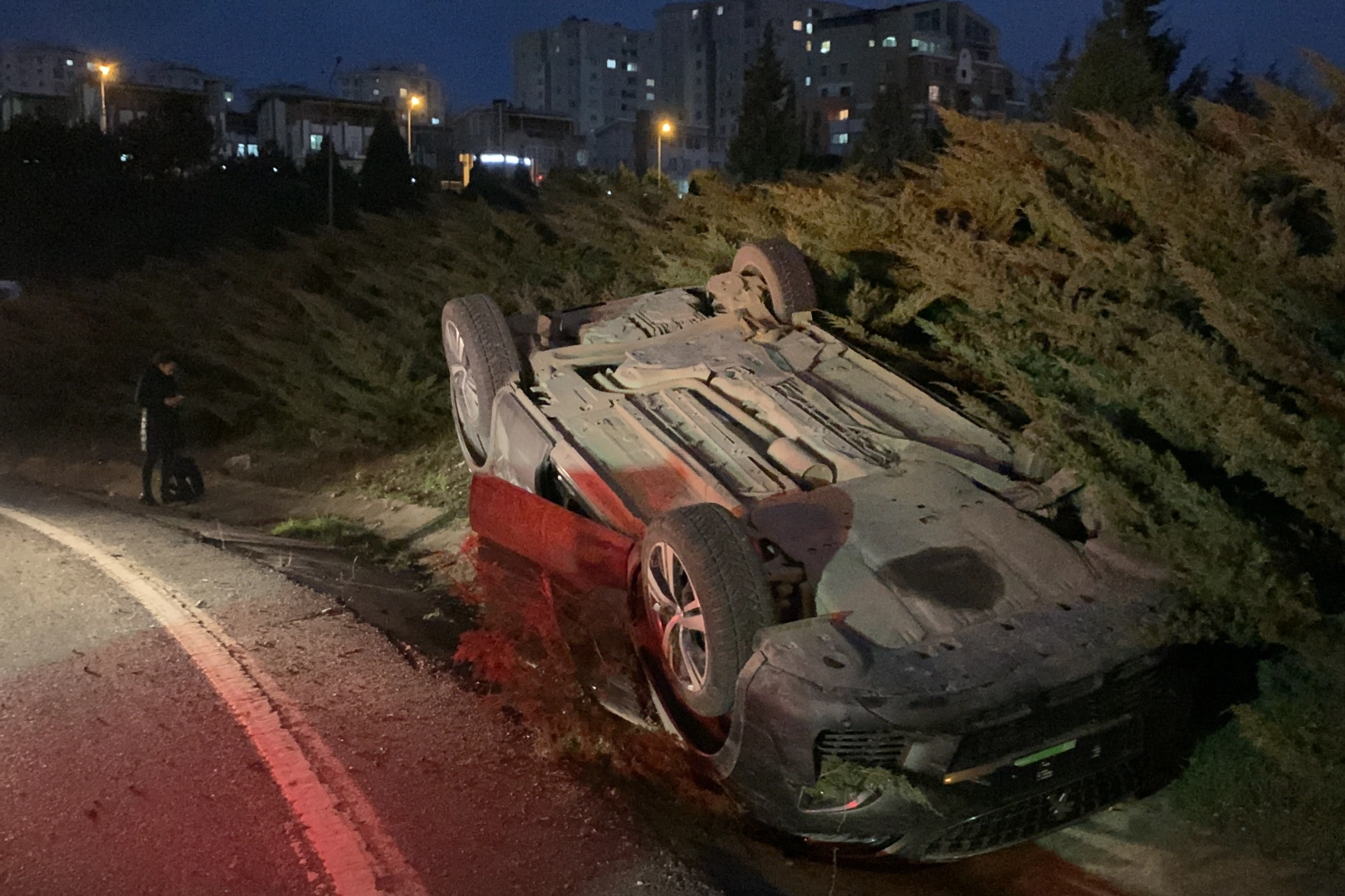 Araç sürücüsü D.Ö. isimli kadın ters dönen araçtan kendi imkanlarıyla burnu bile kanamadan çıktı. Olay yerine gelen trafik polisi ekiplerinin trafik güvenliğini almasının ardından kaza yapan araç çekici vasıtasıyla olay yerinden kaldırıldı.
