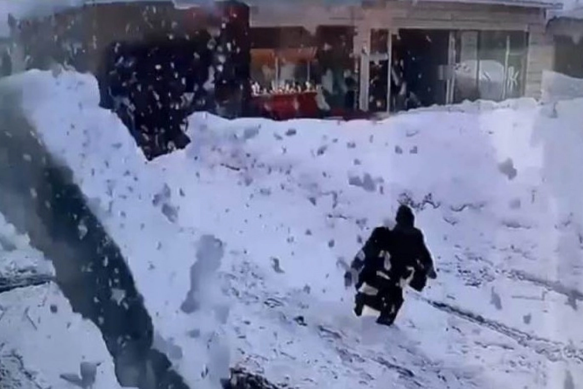 Olay, Bitlis Hüsrevpaşa Mahallesi'ndeki Yeni Çarşı'da meydana geldi. Bir iş yerinden çıkan vatandaş, çatıların altından yürürken son anda çatıdan düşen karı fark edince olası bir faciadan kurtuldu.