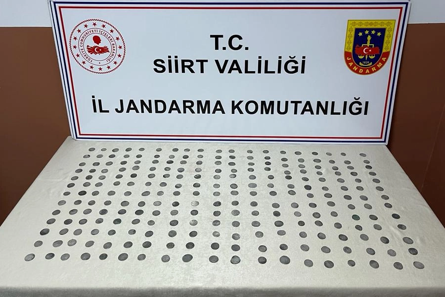 Siirt İl Jandarma Komutanlığı ile KOM Şube Müdürlüğü ekiplerince yapılan çalışmalar sonucu Roma dönemine ait olduğu değerlendirilen 350 adet gümüş sikke ele geçirildi.