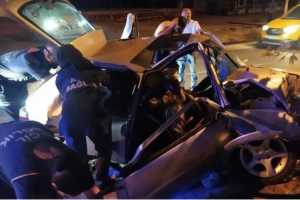 Kontrolden çıkan otomobil ağaca çarparken, kazada ön koltuğunda bulunan kadın yolcu Mürvet Gültaç olay yerinde feci şekilde can verdi.