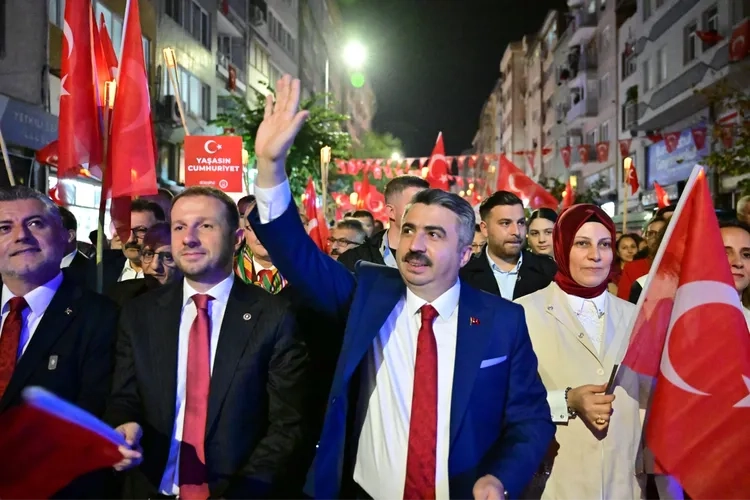 Yıldırım Belediyesi Bayrak Alanı’nda son bulan kortej yürüyüşünün ardından Belediye Başkanı Oktay Yılmaz meydanı dolduran binlerce vatandaşa hitap etti. Tüm vatandaşların 29 Ekim Cumhuriyet Bayramı’nı kutlayan Başkan Oktay Yılmaz, “Bugün; bir milletin varoluş mücadelesini, yeniden dirilişini ve istiklal iradesini taçlandıran kutlu bir günü, cumhuriyetimizin 102. yılını hep birlikte idrak ediyoruz. Cumhuriyet; küllerinden yeniden doğan bir milletin adıdır. Cumhuriyet; her türlü zorluğa rağmen ‘hür ve bağımsız yaşayacağız!’ diyen bir iradenin, ortak kaderimizin adıdır. Bu topraklar yalnızca üzerinde yaşadığımız bir coğrafya değil, uğrunda bedel ödenmiş bir vatandır. Aziz milletimiz; Çanakkale’de, Sakarya’da, Dumlupınar’da gösterdiği destansı kahramanlıkla tarihe yön vermiş; ardından cumhuriyet ile bu büyük yürüyüşü taçlandırmıştır” ifadelerini kullandı.
