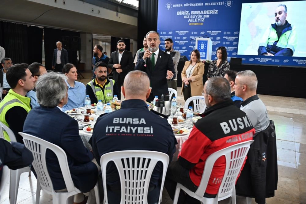 Bursa Büyükşehir Belediye Başkanı Alinur Aktaş, Türkiye’yi yasa boğan asrın felaketinin ardından afet bölgesine gidip, yaraların sarılması için canla başla çalışan tüm Büyükşehir personeline teşekkür etti.