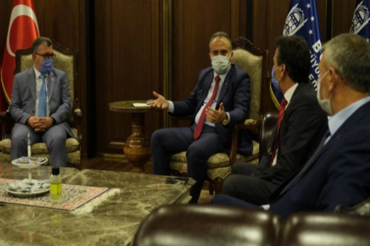 19 Ekim Muhtarlar Günü dolayısıyla Yıldırım Muhtarlar Derneği Başkanı Muhsin Sak, Osmangazi Muhtarlar Derneği Başkanı İdris Aydın, Bursa Osmangazi Muhtarlar Derneği Başkanı Sait Ergen, Nilüfer Muhtarlar Derneği Başkanı Halil Turan ve Bursa Muhtar Derneği adına Sevinç Mutlu'dan oluşan 'Bursa Muhtarlar Komitesi', Bursa Büyükşehir Belediye Başkanı Alinur Aktaş'ı ziyaret etti.