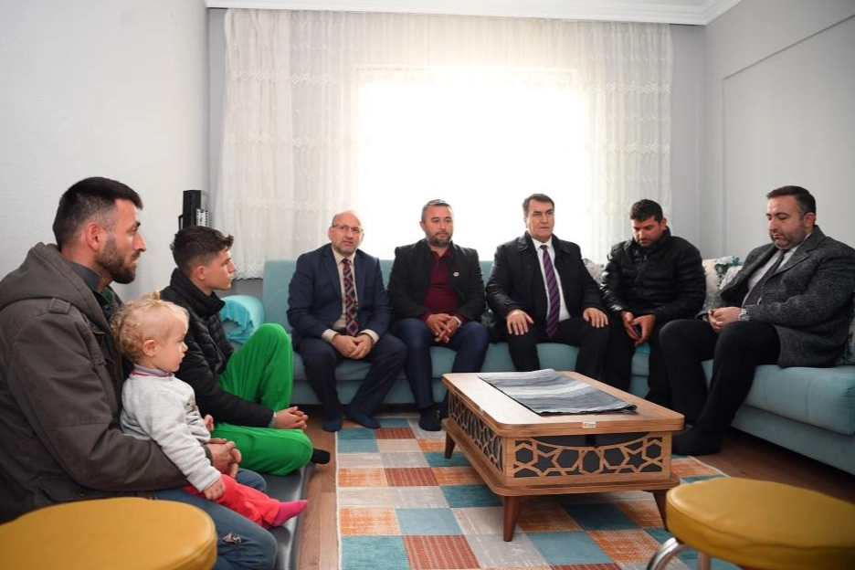 Bursa'da Osmangazi Belediye Başkanı Mustafa Dündar, Kahramanmaraş merkezli depremlerin ardından ilçeye yerleşen depremzede aileleri ziyaret etti.