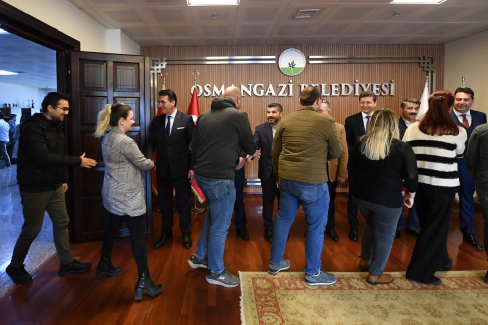Bursa'da Osmangazi Belediye Başkanı Mustafa Dündar, Ramazan Bayramı öncesi son iş gününde belediye personeli ile bayramlaştı.