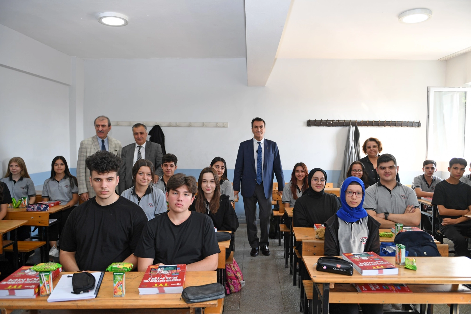 Genç kuşağın kendilerini gelecek adına umutlandırdığını ifade eden Başkan Dündar, “Sizin gibi pırıl pırıl gençleri görünce bu ülkenin geleceği parlak diyoruz. Bu ülkenin geleceği tarihteki misyonuna doğru gidiyor. Yaşadığımız kadim şehir Bursa, 1326’daki fetih ile birlikte 3 kıtaya yayılan bir anlayışın başlangıç noktasıdır. Bu anlayışın temsilcisi sizlersiniz. Bizim felsefemizde, temelimizde barış ve güven var. Bu düzeni sizler devam ettireceksiniz. Bursa’mız tarih şehri. Her köşesini gezip, görün. Kendi değerlerimizi çok iyi bilmeliyiz sahip çıkmalıyız.” diye konuştu. Osmangazi Belediye Başkanı Mustafa Dündar, sınıfları gezerek yardımcı kitap seti hediye ettiği öğrenciler ile sohbet ederek taleplerini dinledi.
