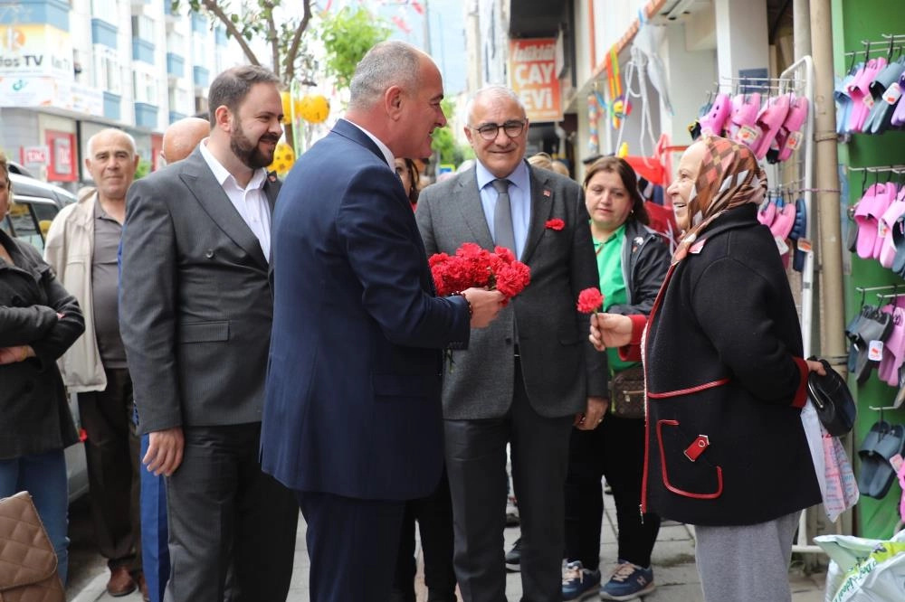 Başkan Sertaslan’ın son durağı Gemlik’in ana arteri olan İstiklal Caddesi oldu. Burada esnafları ziyaret edip vatandaşlarla buluşan Başkan Sertaslan’a Milletvekili Adayları Orhan Sarıbal, Mehmet Atmaca, CHP Gemlik İlçe Başkanı Şükrü Aksu, Saadet Partisi İlçe Başkanı Ahmet Vakkas Yıldız ve CHP Gemlik Kadın Kolları eşlik etti. Gemlik Belediyesi’nin sosyal belediyecilik açısından Türkiye’nin örnek belediyelerinden olduğunu ifade eden Başkan Sertaslan, Türkiye’de yardım anlayışının erzak paketine indirgendiğini ama bu paketlerde vatandaşların ihtiyacı olan ürünlerin bulunmadığını belirtti. Gemlik Belediyesi’nin sosyal yardım işleri kampüsünde 800 metrekarelik kapalı alana sahip halk marketiyle ihtiyaç sahibi vatandaşlara destek olduklarını ve bu sayede Gemlik’te hiçbir çocuğun yatağa aç girmediğini ifade eden Başkan Sertaslan, “Halk Marketimiz kurulduğu günden bu yana yaklaşık 4 milyon kredilik alışveriş imkanı sağladı. Bu marketimizde sadece gıda ürünleri değil, çeşitli hijyen ürünleri ve giyim ürünleri bulunuyor. Sosyologlarımız tarafından tespit edilen ihtiyaç sahiplerine her ay marketimizden evin kadınına verdiğimiz halk kart ile birlikte 300 - 350 ve 400 liralık alışveriş imkânı sağlıyoruz. Bu sayede belediyemizden sosyal yardım alan vatandaşlarımızın onuru ve gururu kırılmadan her ay belirlenen günlerde alışverişlerini marketlerimizden yapabiliyor. Bizim hakkımızda bunlar göreve gelince sosyal yardımları kesecekler denildi ama biz 10 kat arttırarak vatandaşımızın zor gününde yanında olduk” dedi.