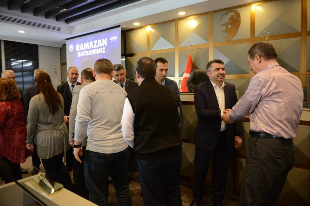 Bursa'da Yıldırım Belediye Başkanı Oktay Yılmaz, Ramazan Bayramı öncesi son mesai gününde Yıldırım Belediyesi başkan yardımcıları, müdürler ve personelle bayramlaştı. Meclis salonunda düzenlenen bayramlaşmada konuşan Başkan Oktay Yılmaz, “Hemşehrilerimize hizmet için özverili bir şekilde, üstün gayret göstererek çalışan, tüm mesai arkadaşlarıma can-ı gönülden teşekkür ederim. Ailelerinizle birlikte, sağlıklı, mutlu bir bayram diliyorum” dedi. Başkan Yılmaz, konuşmalarının ardından personel ile tek tek görüşerek Ramazan Bayramlarını kutladı.