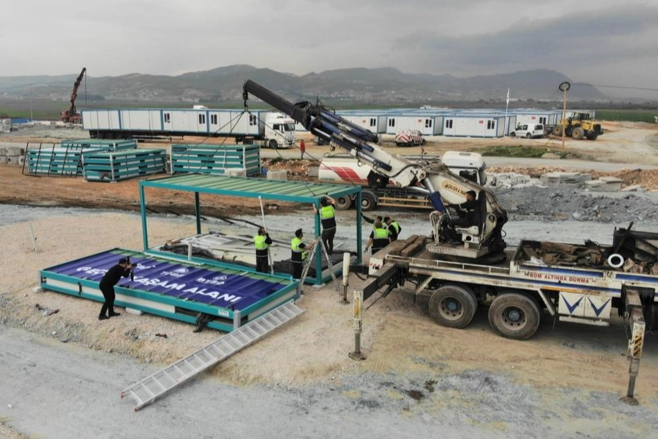 Bursa Ticaret ve Sanayi Odası (BTSO), 6 Şubat depremlerinde en fazla hasar alan şehirlerden biri olan Hatay’da, acil barınma ihtiyacına çözüm üretmek amacıyla kurulan Geçici Yaşam Merkezi’nde ilk konteynerlerin kurulumları tamamlandı. Bursa iş dünyası Kahramanmaraş merkezli depremlerin yol açtığı ağır tahribatın izlerini silmek için yoğun çaba sarf ediyor. Yaklaşık 14 milyonluk nüfusun hayatını doğrudan etkileyen afetin yaralarını sarmak için yapılan çalışmalar hız kesmeden sürüyor. Deprem anından itibaren seferberlik anlayışıyla harekete geçen BTSO, iş dünyasının destekleriyle Bursa Uluslararası Fuar ve Kongre Merkezi’ni Deprem Yardım Toplama Merkezi’ne dönüştürerek başlattığı yardım kampanyasıyla gıdadan jeneratöre, iş makinesinden uyku tulumuna kadar bölgenin acil ihtiyaç duyduğu yardım malzemelerinin yer aldığı 600’ü aşkın TIR’ı afet bölgelerine gönderdi. Deprem bölgesinde ‘Sahra Mutfakları’ ile yemek desteğinde bulunan Bursa iş dünyası, BTSO öncülüğünde erzak ve hijyen paketleri konusunda da yardım kampanyaları başlattı. BTSO, afetten en çok etkilenen şehirlerin başında gelen Hatay’da acil barınma ihtiyacına dönük olarak da ‘Geçici Yaşam Merkezi’ kurmak için çalışmalarını sürdürüyor. İlk konteyner kurulumları yapıldı